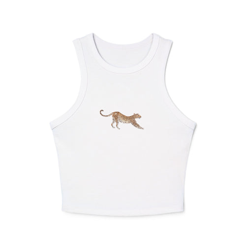 Leopard Print Racer Tank Top — Women’s Micro Rib Cropped Tank