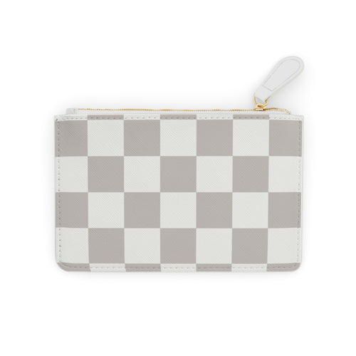 Checkerboard Mini Clutch — Neutral Gray Plaid Coin Wallet